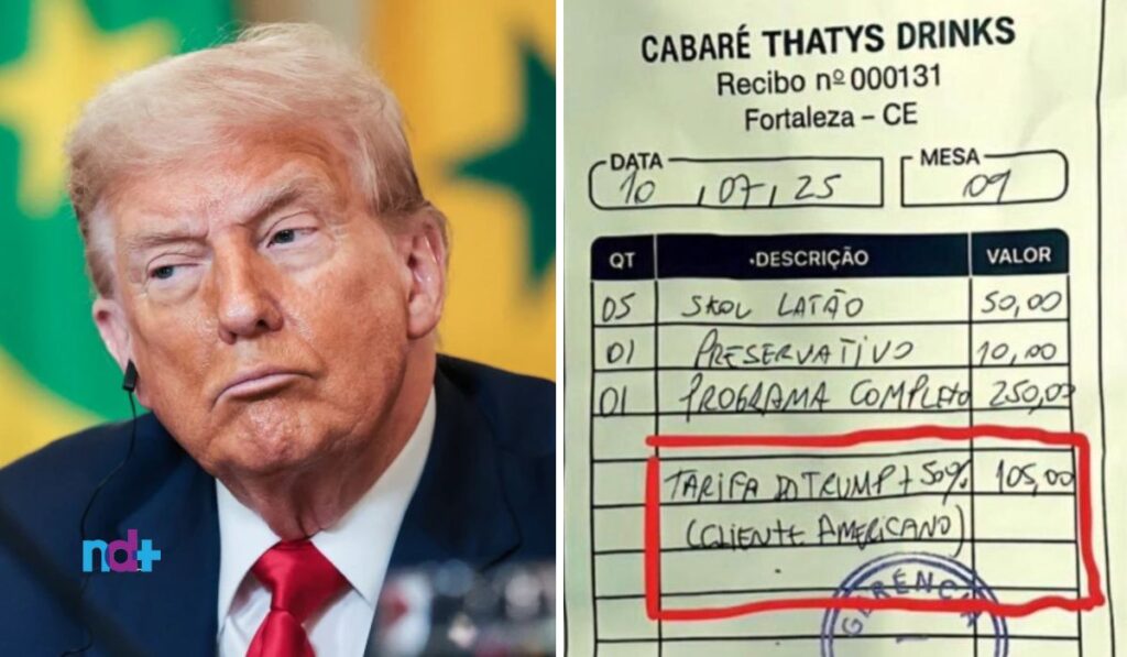 Em plena crise diplomática entre Brasil e Estados Unidos, um cabaré de Fortaleza resolveu entrar no embate tarifário com criatividade e malícia: aplicou um “imposto simbólico” de 50% sobre os serviços prestados a um turista norte-americano. O recibo, escrito à mão, viralizou nas redes com a frase “Tarifa do Trump +50%”, como uma forma lucrativa de retaliação à taxação imposta pelo presidente Donald Trump aos produtos brasileiros.