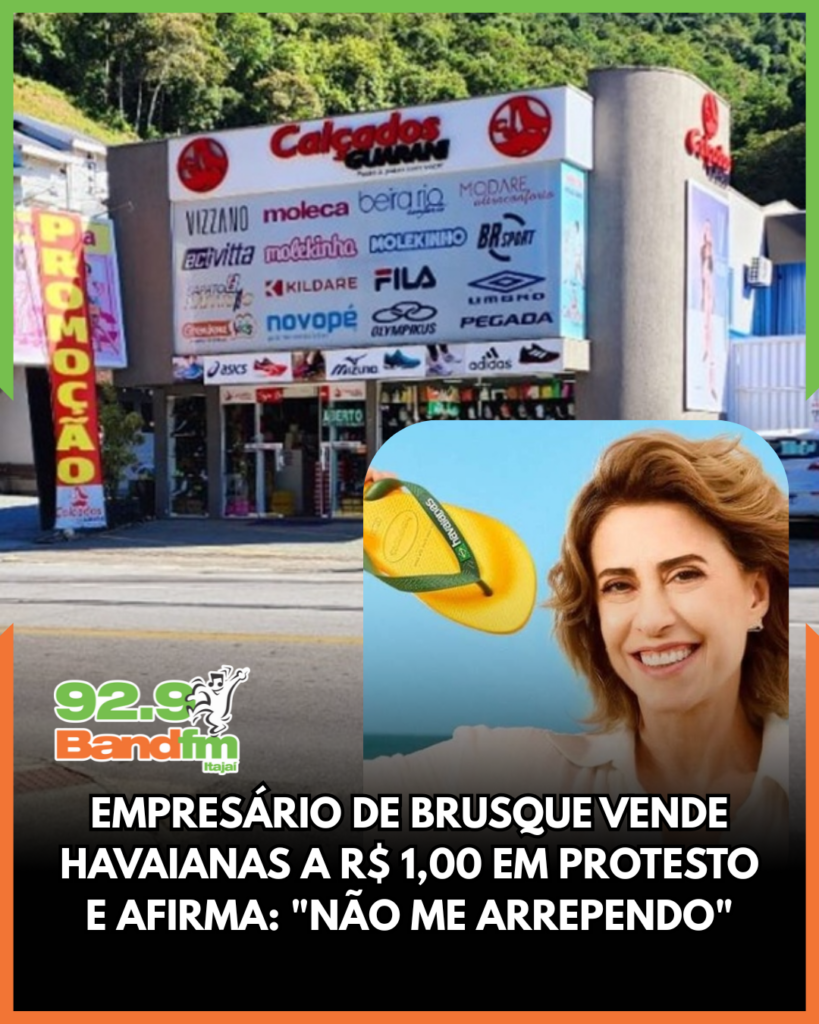 Um empresário do setor calçadista de Brusque, no Vale do Itajaí, chamou a atenção ao liquidar todo o estoque de sandálias Havaianas pelo valor simbólico de R$ 1,00. A ação, segundo ele, foi uma forma de protesto após uma campanha publicitária da marca interpretada como posicionamento político. A liquidação fez com que os pares esgotassem em poucas horas, apesar do prejuízo financeiro estimado em cerca de R$ 9 mil.