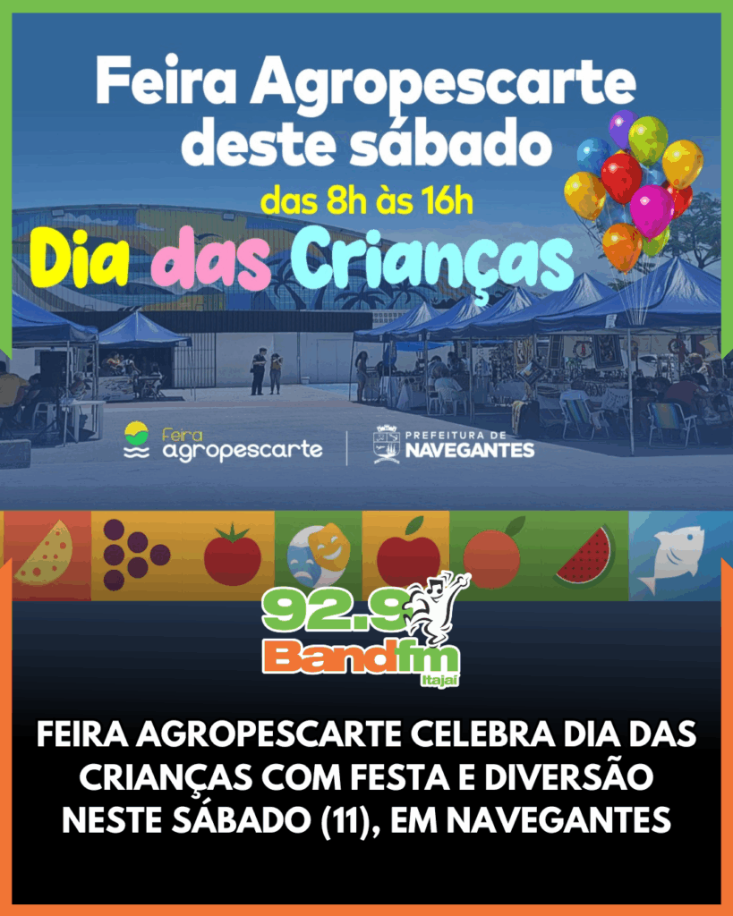“A Agropescarte estará em festa com um Dia das Crianças inesquecível. Uma data especial pensada para celebrar a infância e reunir famílias em um clima de alegria. Venha viver essa experiência com a gente”, convida o secretário de Agricultura, Pesca e Pecuária, Lorival Kempner.