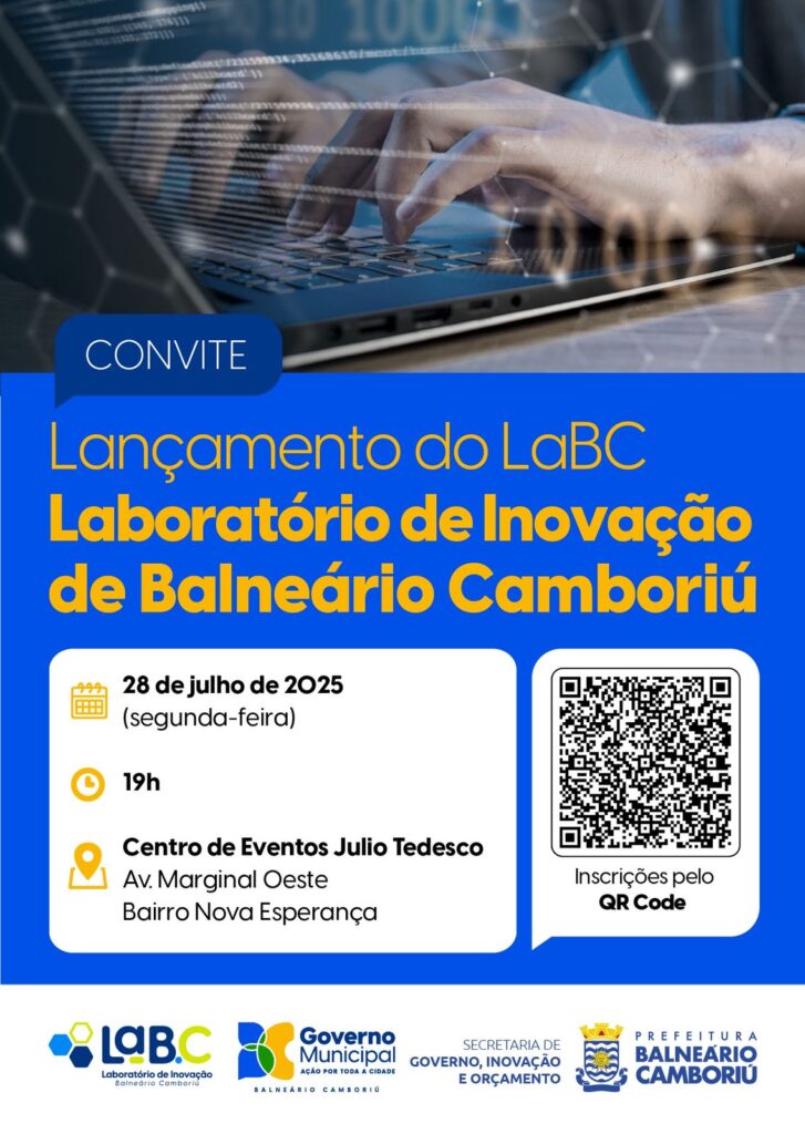 Na próxima segunda-feira (28), às 19h, será lançado oficialmente o Laboratório de Inovação de Balneário Camboriú (LaBC), no Expocentro Júlio Tedesco. A iniciativa é da Prefeitura Municipal, por meio da Secretaria de Governo, Inovação e Orçamento (Segov), em parceria com a Universidade do Estado de Santa Catarina (Udesc) – Campus Cesfi. O projeto marca o mês de aniversário da cidade com um passo importante rumo à modernização da gestão pública.