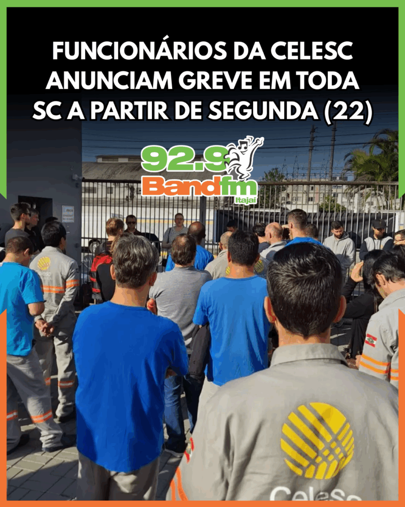 Os trabalhadores da Celesc decidiram entrar em greve a partir da próxima segunda-feira (22), às 6h, após assembleia realizada na última quarta-feira (17). A mobilização terá concentração nos portões das unidades da empresa em todo o estado.